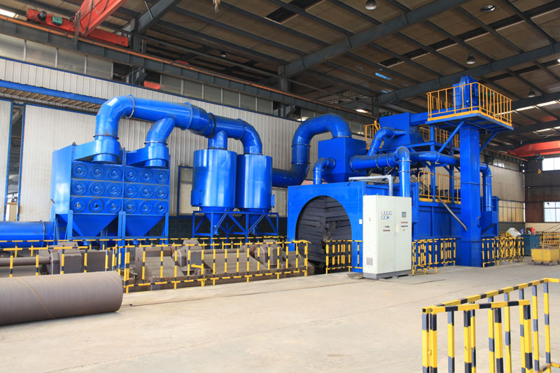 青島華旭機(jī)械為臨沂客戶定做的鋼管外壁拋丸機(jī)特點(diǎn)是拋丸器布置在合適的位置,工件邊進(jìn)邊旋轉(zhuǎn)邊處理,可使不同管徑的鋼管拋丸效果一致,達(dá)到更好的效果。