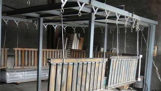 產(chǎn)量較小的朋友,可以采用吊鉤式拋丸機(jī),一次清理多組。
